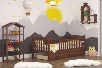 Дитяче ліжко Mebigrand Каріна Горіх темний 70х190 см з бортиками та ящиками (DMBG-2519)