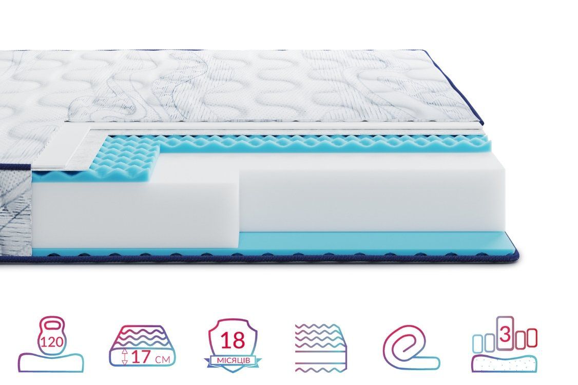Цей матрац забезпечує правильну підтримку хребта, розслаблення м’язів і максимальний комфорт під час сну.